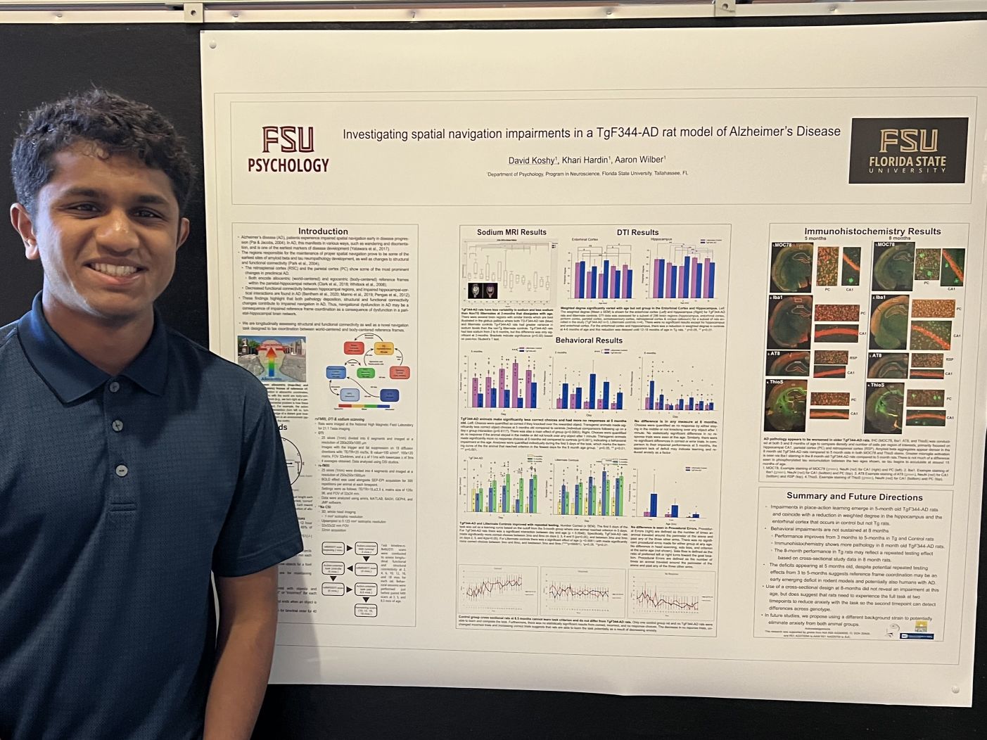 Technician Khari Hardin received a Travel Award to present his abstract, “Longitudinal characterization of sodium MRI, DTI, and action-place spatial learning in the TgF344-AD rat reveals impaired action-place learning emerging at 5-months” at ABRCMS 2025 in San Antonio, TX.